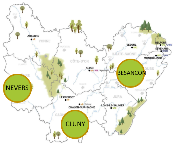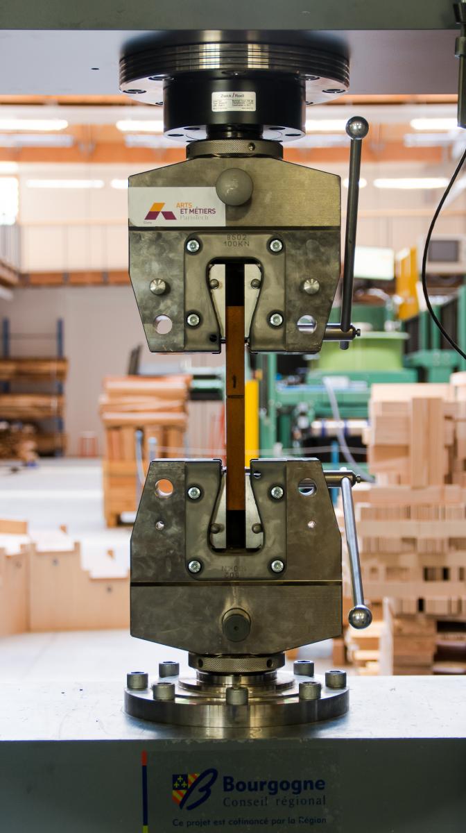 L’équipe Matériau et Usinage du Bois du LaBoMaP se situe sur le Campus des Arts et Métiers de Cluny (Bourgogne Franche-Comté), à proximité des ressources forestières typiques de la région (chêne, douglas, peuplier, , hêtre). Les deux principaux axes d’études de l’équipe sont l’usinage, plus particulièrement le déroulage, et l’étude et la modélisation du comportement mécanique du bois et des produits techniques bois. La caractérisation mécanique se fait au travers plusieurs dispositifs non-destructifs comme les rayons-X, des mesures vibratoires, des scanner lasers pour déterminer la pente de fil, ou destructifs : banc de flexion, machine d’essais universelle. Les développements scientifiques de l’équipe visent à mieux maîtriser la variabilité naturelle du matériau bois pour optimiser son usage dans des produits techniques à destination des domaines de la construction, de l’emballage, du transport, de l’ameublement...